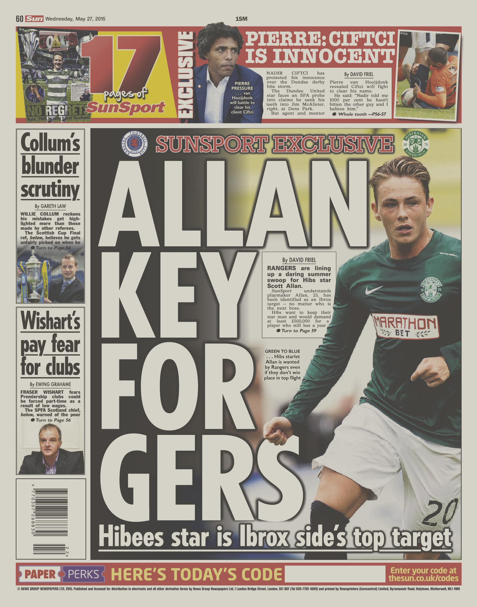 Jelenleg Scott Allan helyzete tűnik a legbonyolultabbnak: hivatalosan eddig két ajánlatot tettünk érte, de mind a 175, mind a 225 ezer fontosat visszautasította a Hibernian, mondván egyrészt röhejes az összeg, másrészt a legnagyobb riválisnak hülyék lennének eladni a legjobbjukat. A kupameccs (amelyen csak csereként játszott) másnapján azonban érdekes hír jelent meg a sajtóban: amikor tavaly nyáron a zöldekhez került, szóban abban maradtak, ha egy nagyobb klub vinné, akkor elengedik. Namármost úgy tűnik, hogy menet közben meggondolták magukat és/vagy a Rangerst nem tekintik jelentősebbnek maguknál.